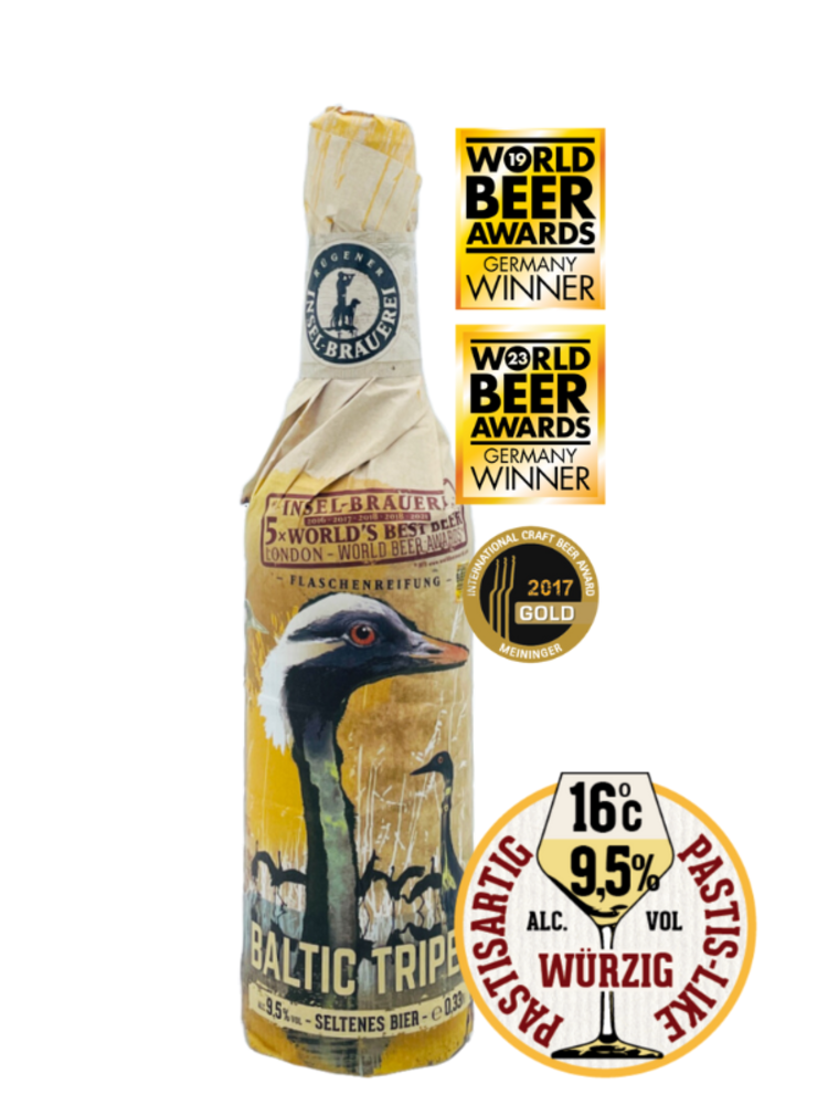Rechtstreeks van het eiland Rügen in Noord-Duitsland: ambachtelijke bieren van de bekroonde Insel-Brauerei (sinds 2015). Gebrouwen met natuurlijke hop, open fermentatie en gerijpt in de zeelucht – verpakt in stijlvol papier met eilanddesign. Bieren die ook prachtig combineren met mooie gerechten.