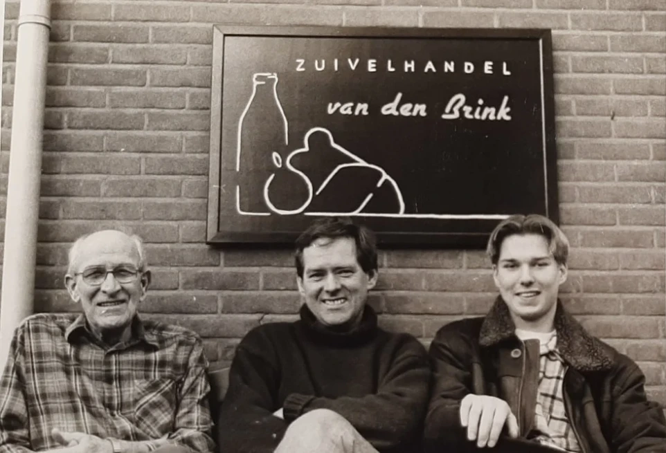 Even terug in de geschiedenis: overgrootvader Gert van den Brink begon meer dan 100 jaar geleden met een zuivelhandel. Hij ging langs de deuren om zijn spullen te slijten, kende al zijn klanten bij naam en wist hun voorkeuren. Daarna kwam opa Jan, die opgevolgd werd door Gert van den Brink. Gert breidde de zuivelhandel uit met een paar flessen wijn, puur vanuit liefhebberij.